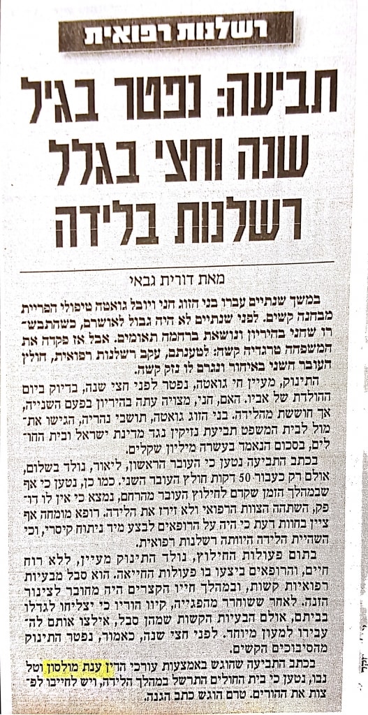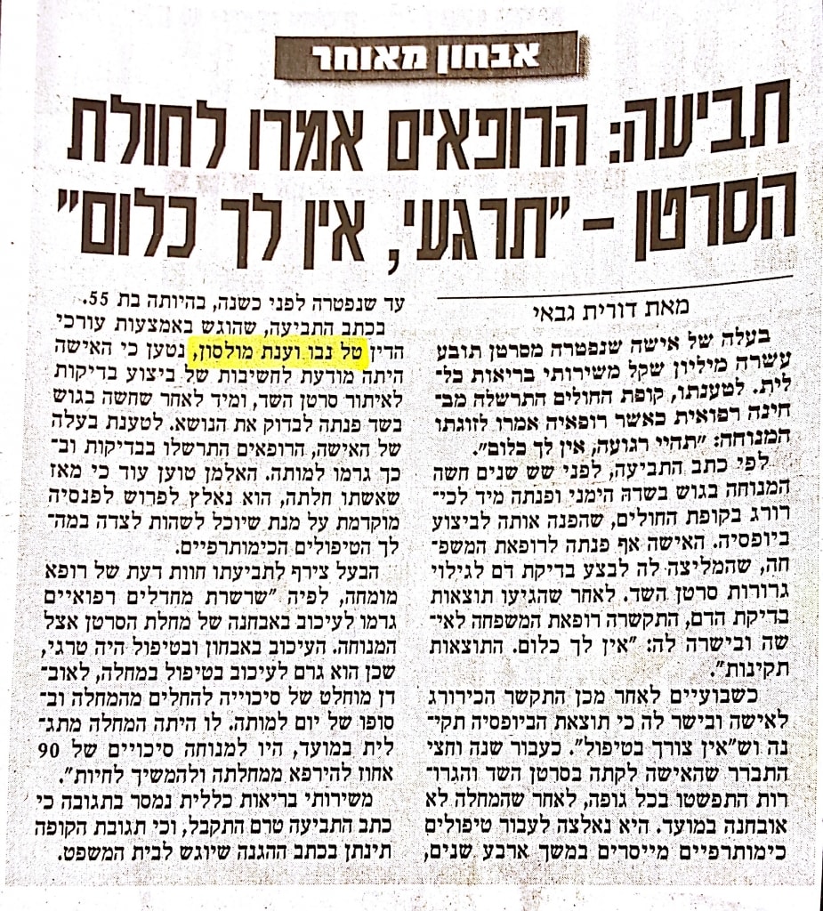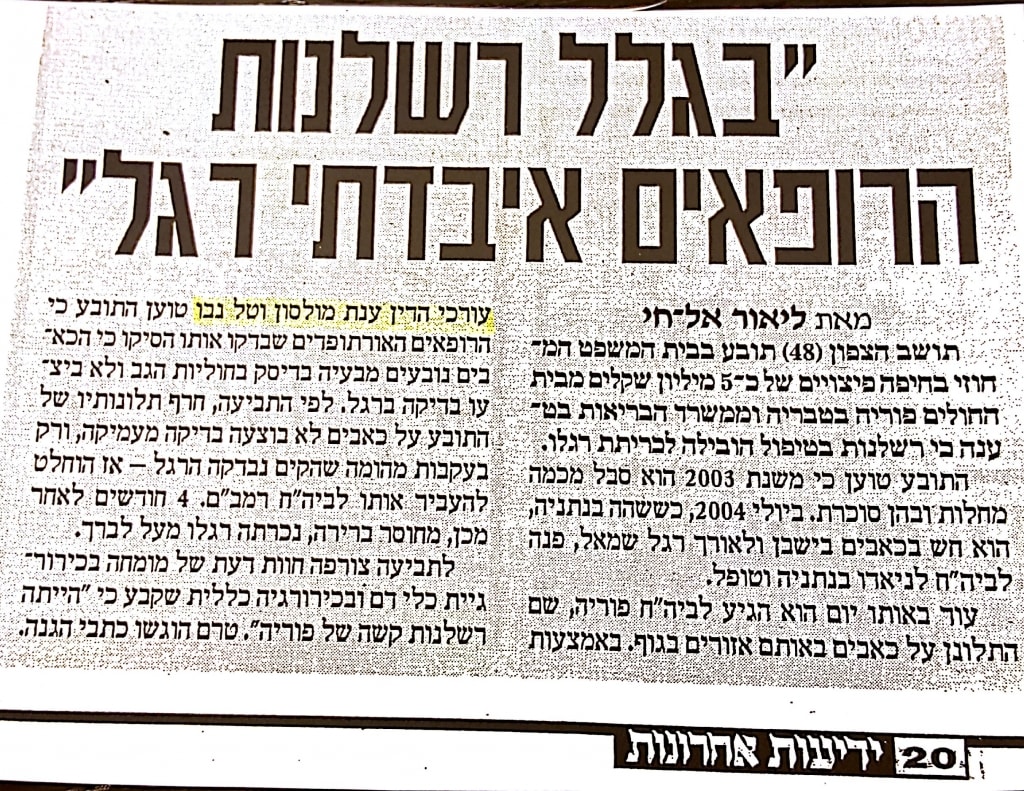 מהיחידות שעוסקות אך ורק ברשלנות רפואית.